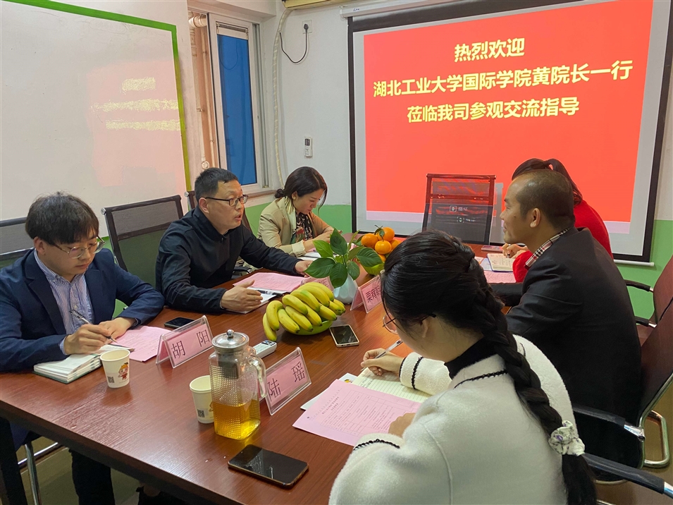 熱烈歡迎湖北工業(yè)大學(xué)國際學(xué)院黃副院長一行蒞臨我司交流座談