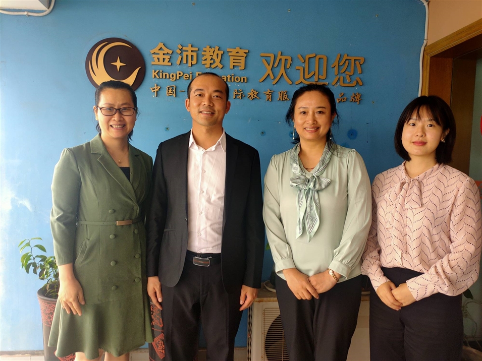 (左一廣西金沛教育校長張金雪女士、左二廣西金沛教育執(zhí)行董事粟宥朝先生、右二北京師范大學(xué)一帶一路學(xué)院陳健博士、北京師范大學(xué)一帶一路學(xué)院李邵悅老師)