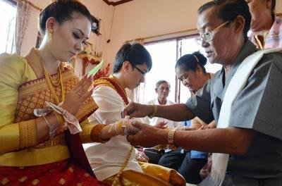 與中國不同,老撾流行倒插門,即男方主動到女方家里做上門女婿。婚禮也是由女方家操辦,這與老撾女性的社會地位日益提高息息相關(guān)。