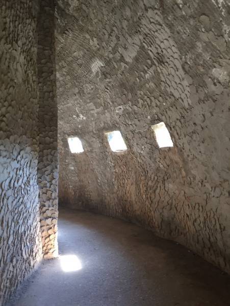 塔分三層,從低到高分別代表地獄、人間和天堂。“地獄”的雕像多以惡鬼骷髏為主,沿著“天堂地獄塔”張開的嘴巴進(jìn)入,拾階而上,沿著一層環(huán)繞的塔邊,塔心設(shè)計(jì)為用水泥澆筑的各種地獄景象,光線從塔壁蜿蜒進(jìn)去,微弱的光打在面目可怖的鬼怪雕塑上,讓人心生敬畏。