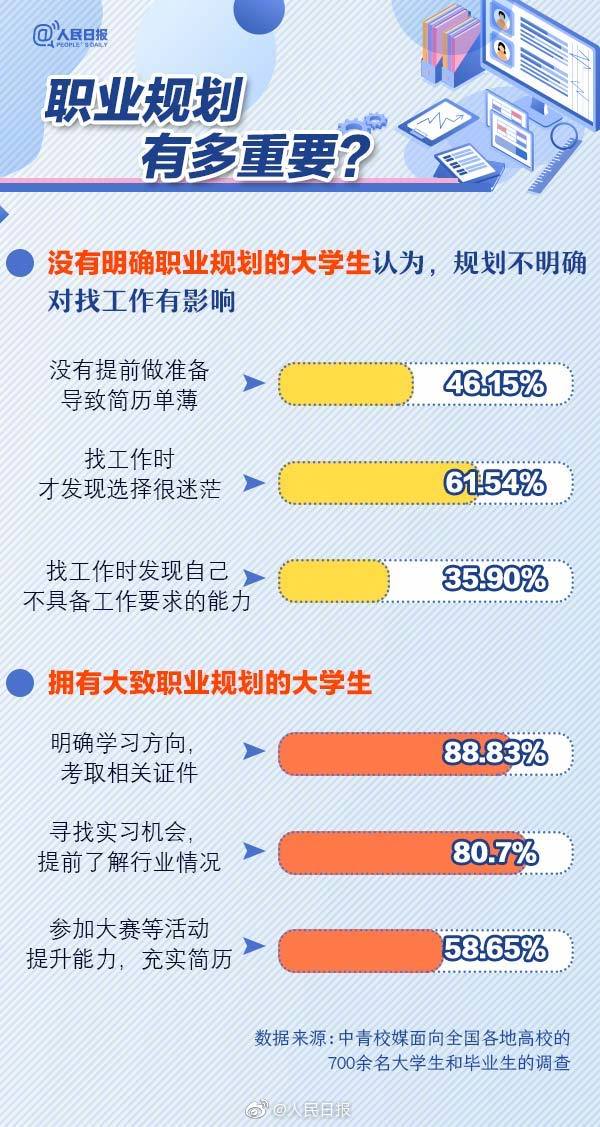 【秋招進行時,你覺得#大學(xué)生該不該職業(yè)規(guī)劃#?】近日有調(diào)查顯示,#近九成大學(xué)生認(rèn)為職業(yè)規(guī)劃利于求職#,但僅二成有明確規(guī)劃。一份完備的職業(yè)規(guī)劃,會為你確立清晰的職業(yè)目標(biāo),提早積攢工作能力,減少求職時 “兩眼一蒙、無從下手”的風(fēng)險。你做過職業(yè)規(guī)劃嗎?實用職業(yè)規(guī)劃指南↓↓轉(zhuǎn)給正在求職的TA!