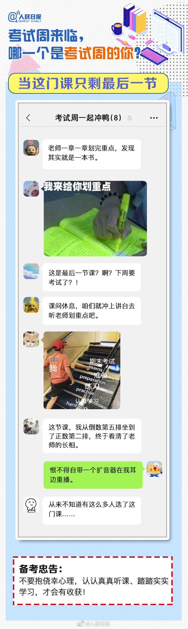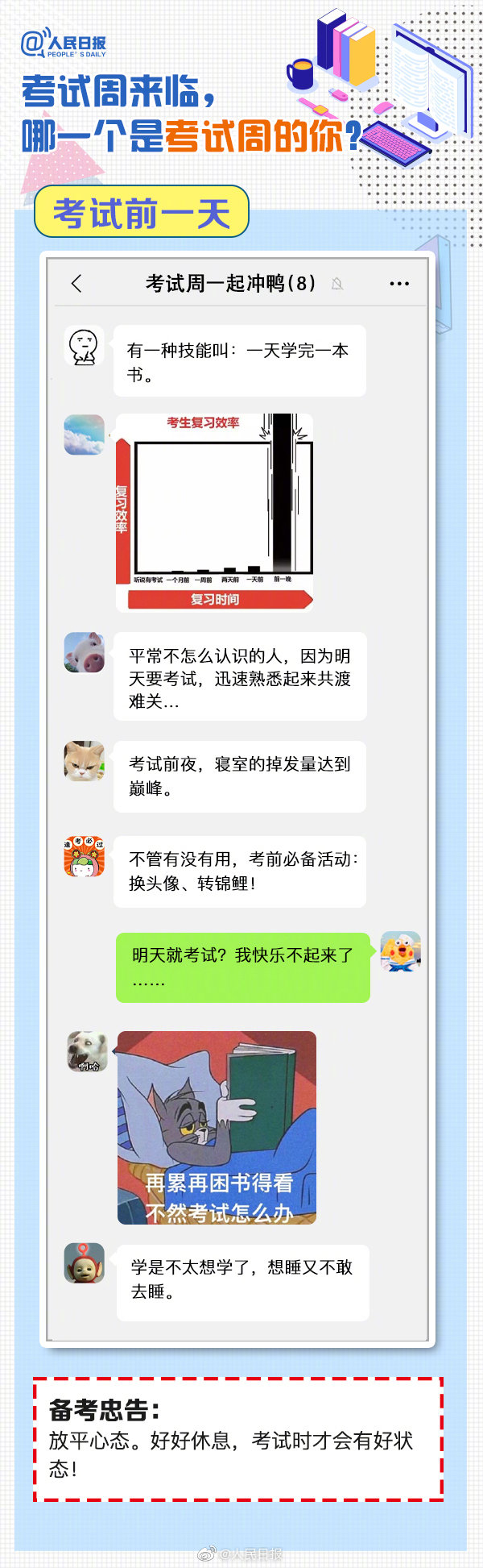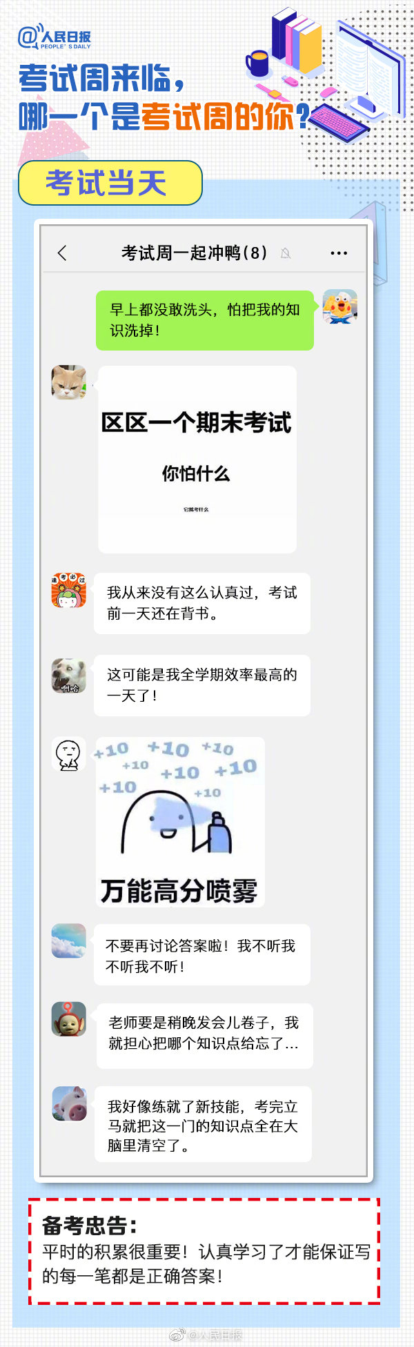 又到考試周,復(fù)習(xí)中的你,狀態(tài)如何?“寢室、食堂、圖書館三點一線”、“一天學(xué)完一本書”、“復(fù)習(xí)到頭禿”…這是考試周的你嗎?
