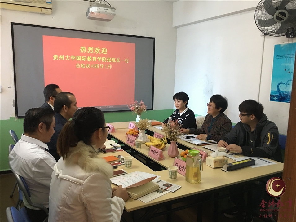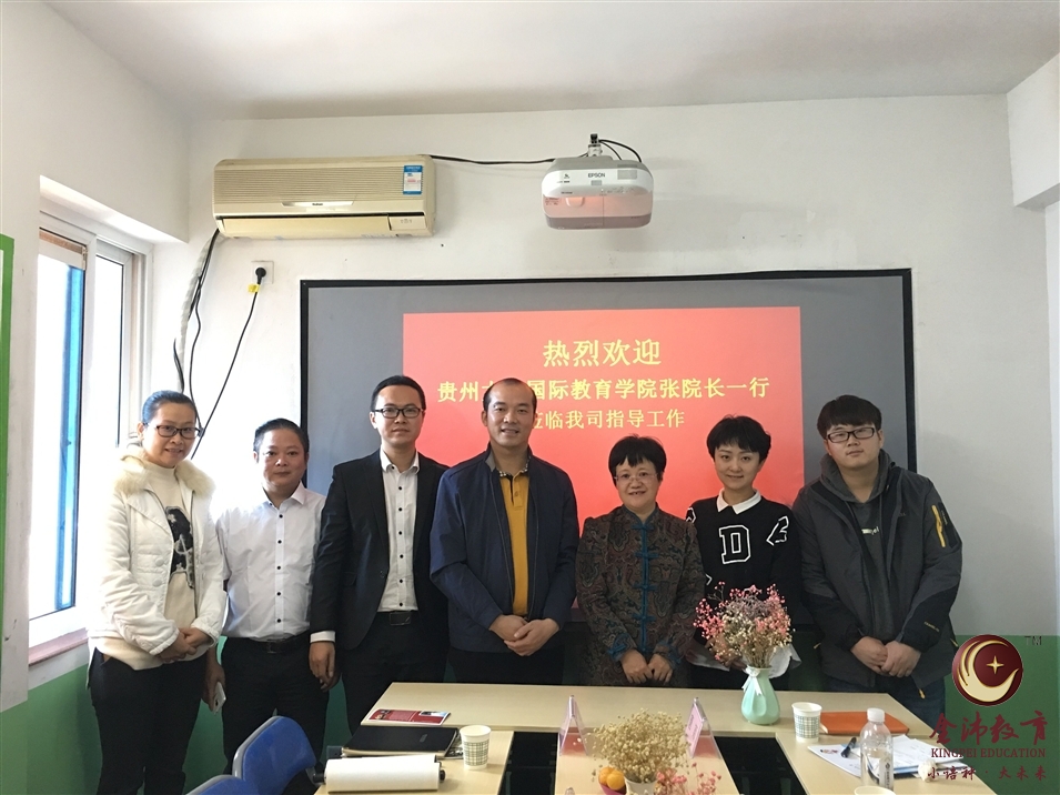 2017年12月2日上午,貴州大學(xué)國(guó)際教育學(xué)院張成霞院長(zhǎng)與教學(xué)科科長(zhǎng)唐穎、留學(xué)生輔導(dǎo)員李博一行蒞臨我司視察指導(dǎo)工作,由我司執(zhí)行董事粟宥朝、校長(zhǎng)張金雪、國(guó)際部合伙人吳琪、林健偉老師接待來(lái)賓。