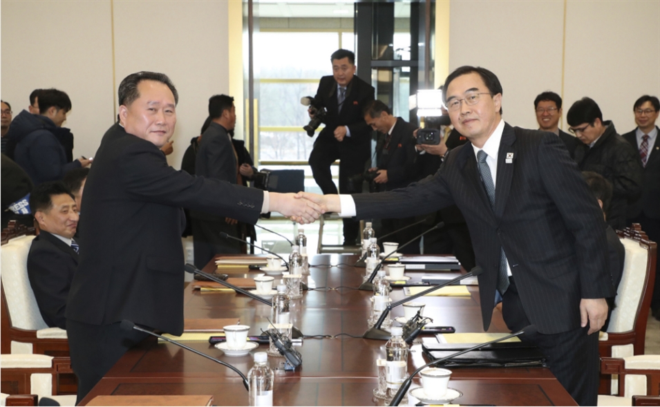當?shù)貢r間2018年1月9日,韓國和朝鮮代表在板門店韓方一側(cè)“和平之家”舉行韓朝高級別會談,就朝方派代表團參加平昌冬奧會、南北關(guān)系改善等共同關(guān)心的問題進行討論。這是時隔兩年多之后,韓朝雙方再次實現(xiàn)高級別對話。