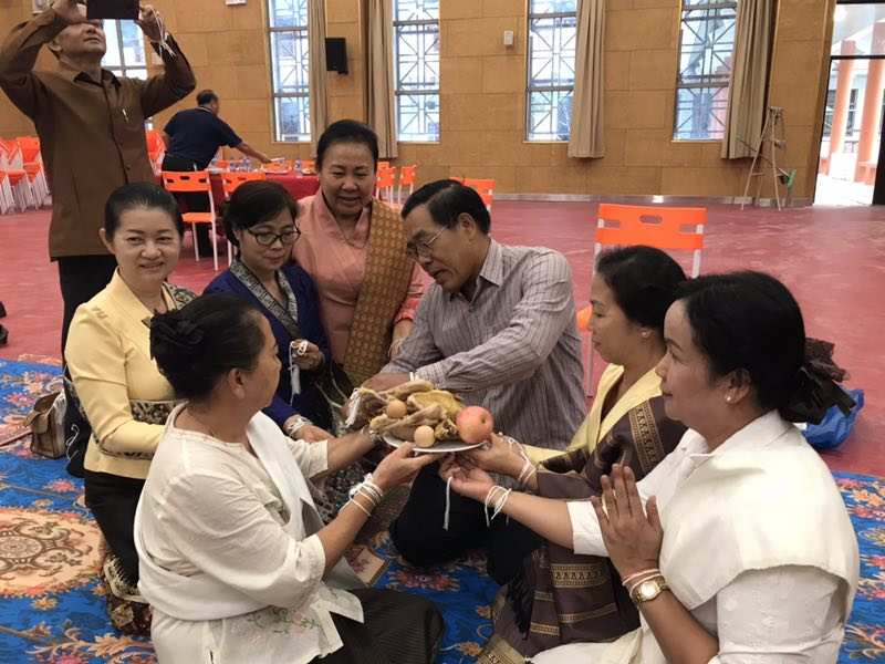 2019年5月13號(hào)凌晨五點(diǎn),老撾國(guó)立大學(xué)孔子學(xué)院新樓成功舉辦栓線(xiàn)祝福儀式,老撾國(guó)立大學(xué)校長(zhǎng)宋西.諾潘塞、副校長(zhǎng)宏頻.占塔翁、辦公室主任瑪妮淑和老撾國(guó)立大學(xué)孔子學(xué)院老方院長(zhǎng)阮瑋蕾.賽雅勒、中方院長(zhǎng)李肖以及中國(guó)志愿者老師等參加此次活動(dòng)。