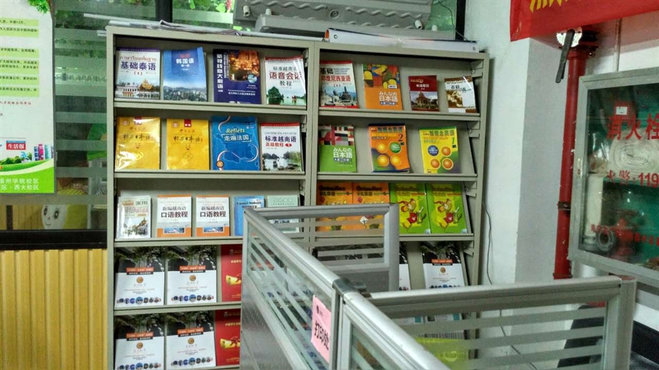 書(shū)架上也是教材滿滿,各類語(yǔ)種教材可供學(xué)員們翻閱。